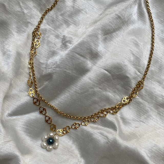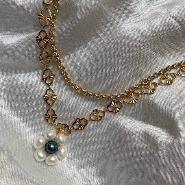 - Composition : double chaîne et apprêts en acier inoxydable hypoallergénique, fleur en perles de nacre d'eau douce.
