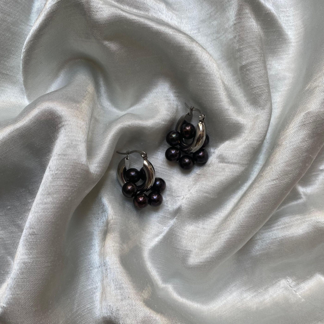 Les perles sont en nacre d'eau douce tissées à la main et les créoles sont en acier inoxydable neuf.